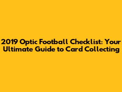 - Q: Where can I find a complete checklist for the 2019 Optic Football cards? A: Online resources such as Beckett, Sports Card Investor, and Cardboard Connection are great places to find updated checklists. Remember that information can be constantly updated, so check reputable sources.