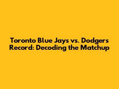 Blue Jays Vs. Dodgers: A Look At Their Head-to-Head History