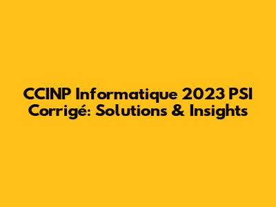 CCINP Info 2023 PSI: Solutions & Insights