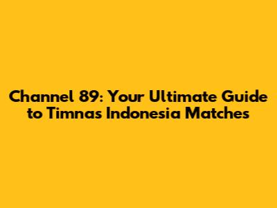Understanding Channel 89 and Its Importance for Timnas Fans