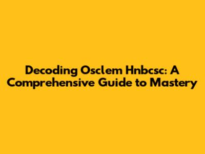 Decoding Osclem Hnbcsc: A Comprehensive Guide To Mastery