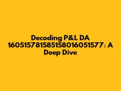 Decoding P&L DA 160515781585158016051577: A Deep Dive
