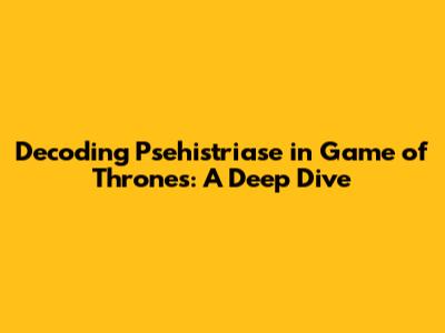 Decoding Psehistriase In Game Of Thrones: A Deep Dive