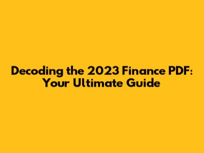 Decoding The 2023 Finance PDF: Your Ultimate Guide