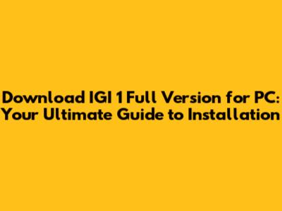 Download IGI 1 For PC: Your Ultimate Guide