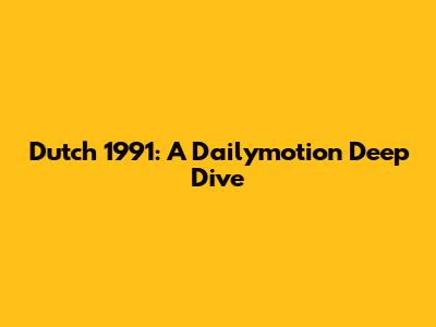 Dutch 1991: Relive The Drama On Dailymotion