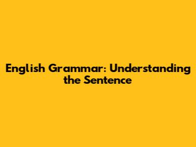 English Grammar: Understanding The Sentence