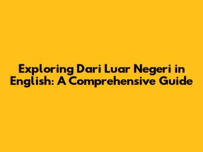 Exploring 'Dari Luar Negeri' In English: A Comprehensive Guide
