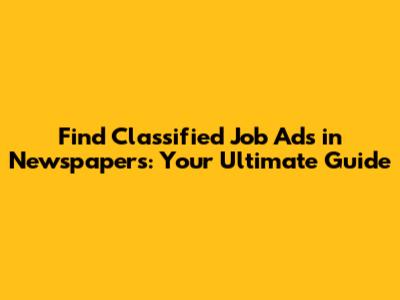 Find Classified Job Ads In Newspapers: Your Ultimate Guide