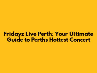 Fridayz Live Perth: Your Ultimate Guide!