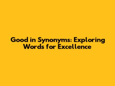 Good In Synonyms: Exploring Words For Excellence