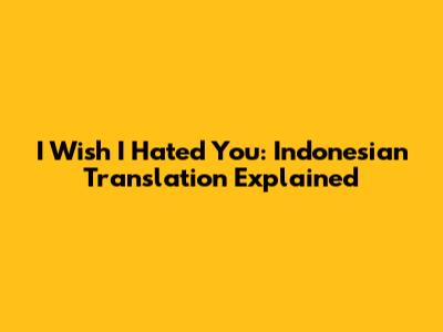 I Wish I Hated You: Indonesian Translation Explained