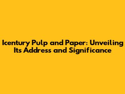 Hey there, paper enthusiasts and curious minds! Ever wondered about Icentury Pulp and Paper's address and what makes this company tick? Well, buckle up, because we're about to dive deep into the world of this fascinating entity. We'll explore where it's located, how to get in touch, and why it matters in the grand scheme of the paper industry. Get ready for a journey filled with interesting facts and insights that will surely leave you impressed. Let's get started!