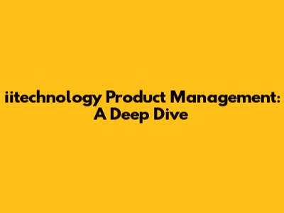Iitechnology Product Management: A Deep Dive