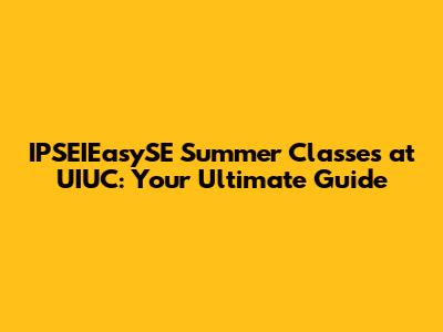 IPSEIEasySE Summer Classes At UIUC: Your Ultimate Guide