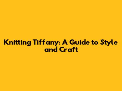 Knitting Tiffany: A Guide To Style And Craft