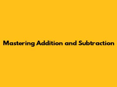 Mastering Addition And Subtraction