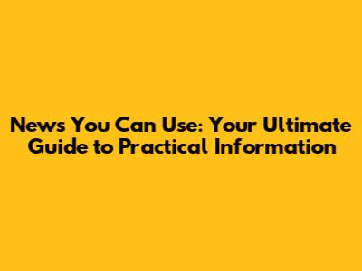 News You Can Use: Your Guide To Practical Information