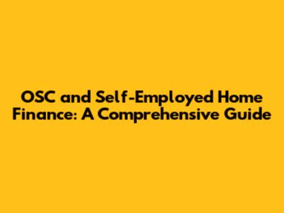 OSC & Self-Employed: Your Guide To Home Finance
