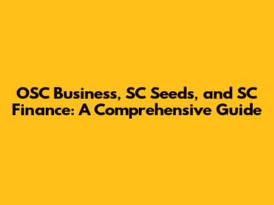 OSC Business, SC Seeds, And SC Finance: A Comprehensive Guide