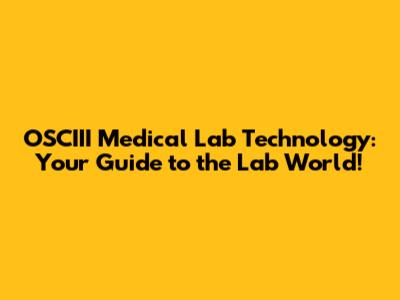 OSCIII Medical Lab Technology: Your Guide To The Lab World!