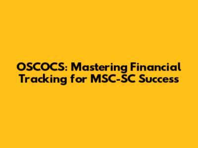OSCOCS: Mastering Financial Tracking For MSC-SC Success