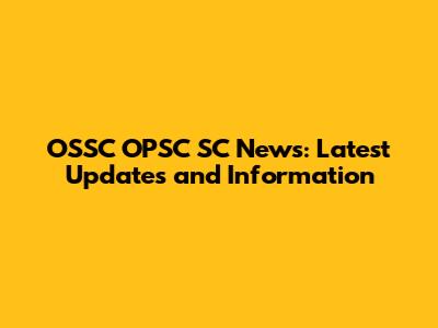 OSSC OPSC SC News: Latest Updates And Information