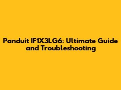 Panduit IF1X3LG6: Ultimate Guide And Troubleshooting