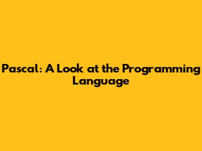 Pascal: A Look At The Programming Language