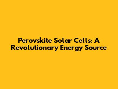 Perovskite Solar Cells: A Revolutionary Energy Source