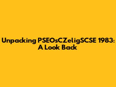 Unpacking PSEOsCZeligSCSE 1983: A Look Back