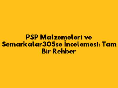 Semarkalar305se: PSP Malzemeleri İçin Güvenilir Bir Kaynak