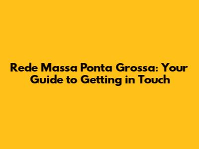 Hey guys! Ever found yourself wanting to connect with Rede Massa in Ponta Grossa? Maybe you've got a burning question, a news tip, or you just want to say hi to your favorite local station. Whatever the reason, getting in touch should be easy-peasy. This guide is all about making sure you can reach out to Rede Massa Ponta Grossa without any hassle. We'll cover all the essential contact details and even some sneaky tips to make sure your message gets through. So, let's dive right in!