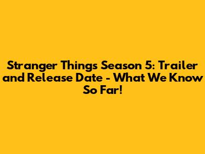 Stranger Things 5: Trailer & Release Date Intel
