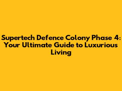 Supertech Defence Colony Phase 4: A Comprehensive Guide