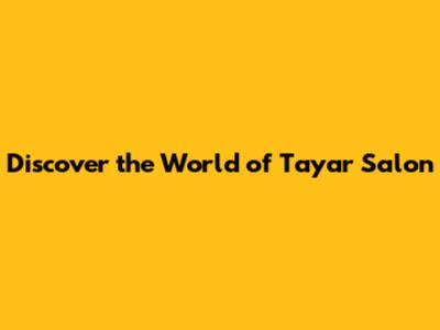 Tayar Salon: Your Ultimate Guide