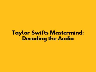 Taylor Swift's Mastermind: Decoding The Audio