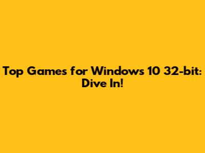 Top Games For Windows 10 32-bit: Dive In!