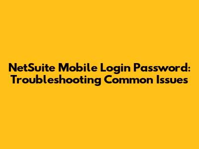 Common NetSuite Mobile Login Password Problems and Solutions
