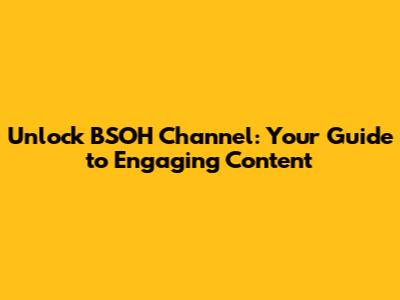 Unlock BSOH Channel: Your Guide To Engaging Content