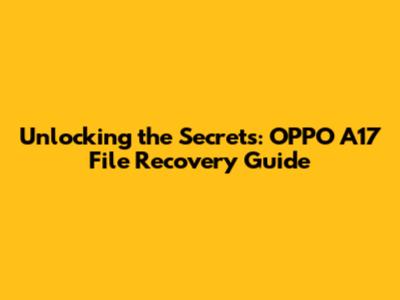 Unlocking The Secrets: OPPO A17 File Recovery Guide