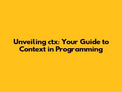 Unveiling Ctx: Your Guide To Context In Programming