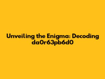 Unveiling The Enigma: Decoding Da0r63pb6d0