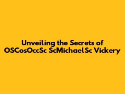 Unveiling The Secrets Of OSCosOccSc ScMichaelSc Vickery