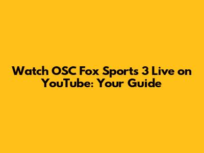 Watch OSC Fox Sports 3 Live On YouTube: Your Guide