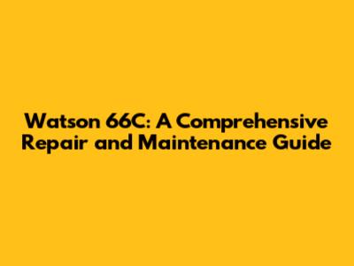 Watson 66C: Repair Guide, Common Issues & Solutions